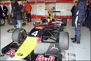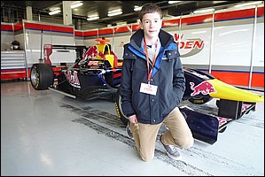 | Sandy tries out Carlos Sainz Junior's GP3 race car for size |