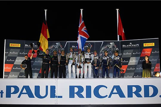 Photo: Sandy Mitchell (centre) on the top step of the podium at Paul Ricard with Michele Beretta (left) and Martin Kodric