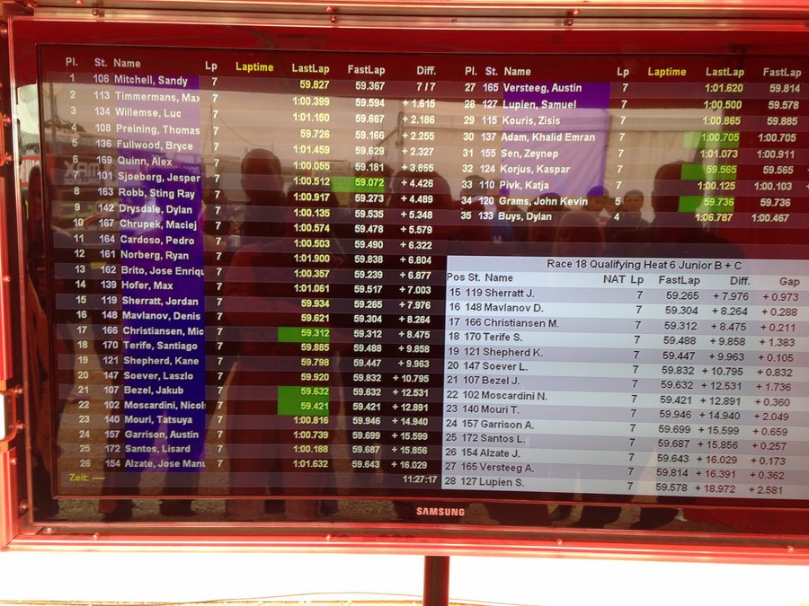 After some excellent conditions for testing Sandy went on to qualify 18th out of 72 entrants in the Junior class. This gave him a start position of P10 for heat 1 and a start position P9 for heats 2 and 3.